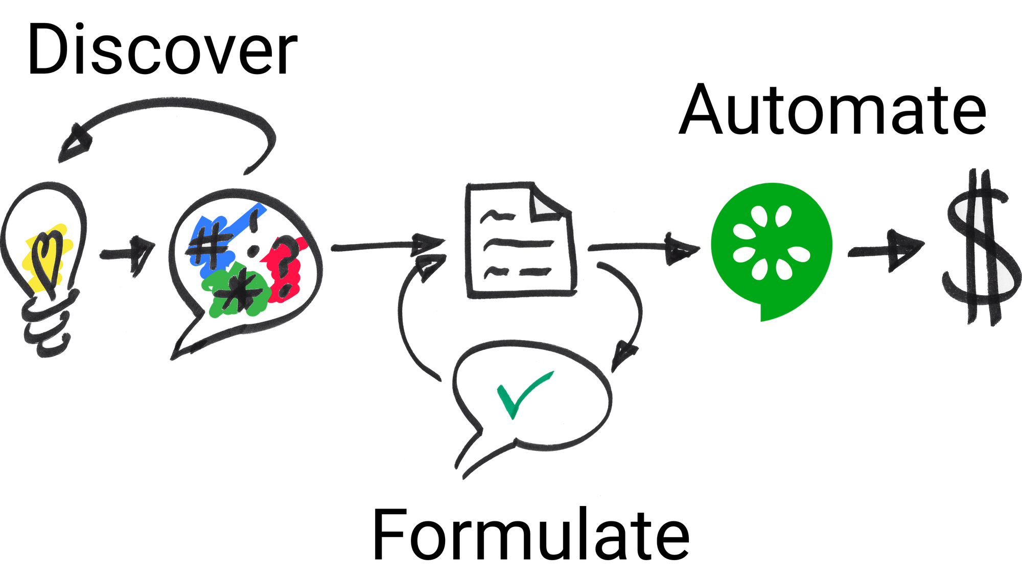“Anyway, once everyone’s happy that those scenarios describe the thing as we want to build it, the team can automate it and use Cucumber to guide them as they write the code.”